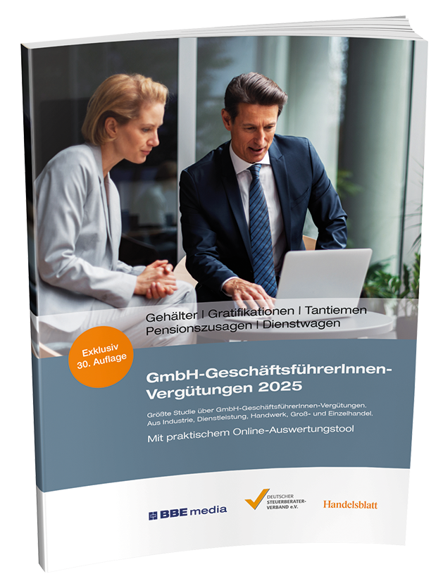 Die aktuelle Gehaltsstrukturuntersuchung „GmbH-GeschäftsführerInnen-Vergütungen 2025“ basiert auf den Gehaltsdaten von 2.551 GmbH-Geschäftsführern und Geschäftsführerinnen und gibt Auskunft über die aktuellen Gehälter und Zusatzleistungen in 50 Branchen aus fünf Wirtschaftszweigen. Bestandteil der Studie ist ein exklusives Online-Auswertungstool, das eine individuelle Positionsbestimmung nach acht, individuell bestimmbaren Abfragekriterien (u. a. Branche, Betriebsgröße, Geschäftsführerstatus, Umsatzrendite) Ergebnisse liefert.