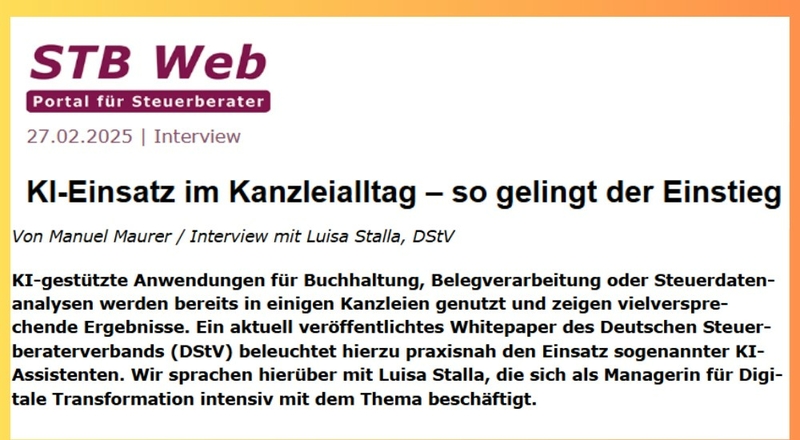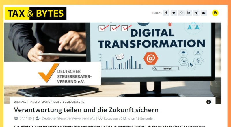 Der Deutsche Steuerberaterverband begleitet diesen Wandel praxisnah und verantwortungsvoll im Sinne des Berufsstands.