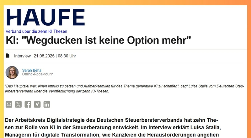 Steuerberaterverband über die zehn KI Thesen | Steuern | Haufe