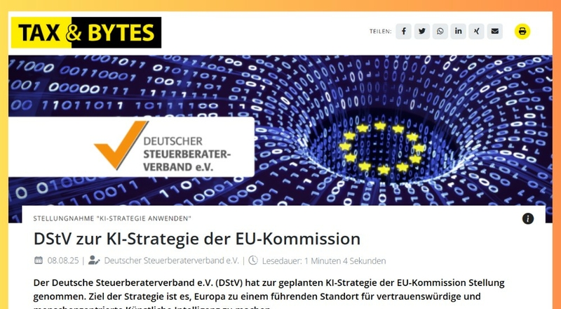 DStV zur KI-Strategie der EU: Stellungnahme veröffentlicht | tax & bytes